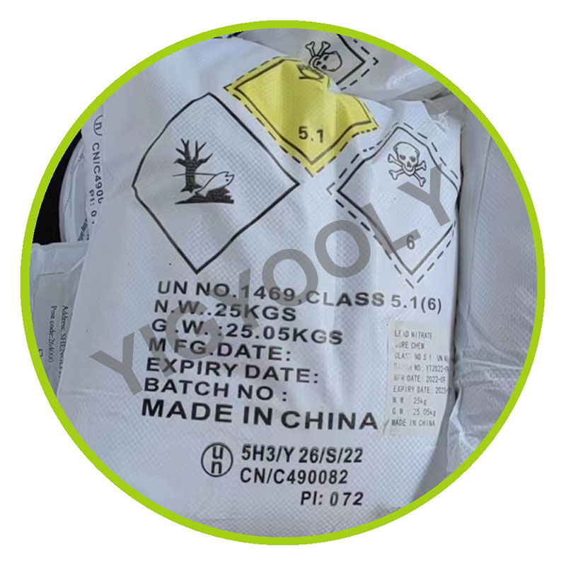 YIGYOOLY Lead Nitrate, ປະກອບອາຊີບຈາກປະເທດຈີນ, ເປັນສານປະກອບອະນົງຄະທາດ, ເປັນກ້ອນສີຂາວຫຼື monoclinic crystal, ແຂງແລະເຫຼື້ອມ, ແລະສາມາດລະລາຍໃນນ້ໍາໄດ້ງ່າຍ. ພາຍໃຕ້ຄວາມຮ້ອນສູງ, ມັນຈະເສື່ອມໂຊມເປັນທາດອອກຊິເຈນ, ແລະການແກ້ໄຂຂອງມັນຜະລິດ precipitates ສີດໍາໃນເວລາທີ່ມັນພົບກັບ hydrogen sulfide. ສ່ວນໃຫຍ່ແມ່ນໃຊ້ໃນການຜະລິດເກືອນໍາ, mordants, fireworks, ແລະອື່ນໆ.